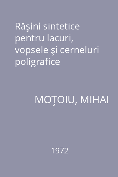 | Titlu | Răşini sintetice pentru lacuri, vopsele şi cerneluri poligrafice |