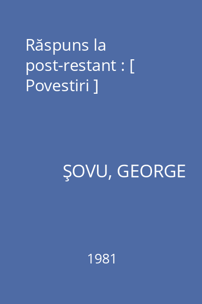 | Titlu | Răspuns la post-restant : [ Povestiri ] |