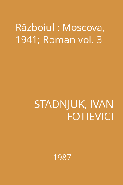 | Alte informaţii la titlu | Moscova, 1941; Roman |
