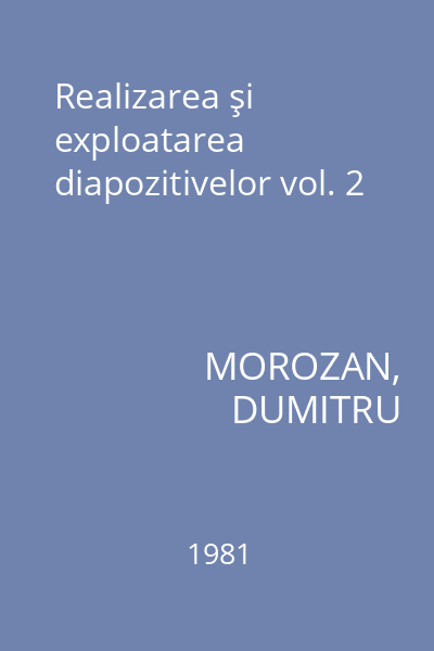 | Titlu | Realizarea şi exploatarea diapozitivelor vol. 2 |