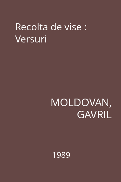 | Titlu | Recolta de vise : Versuri |