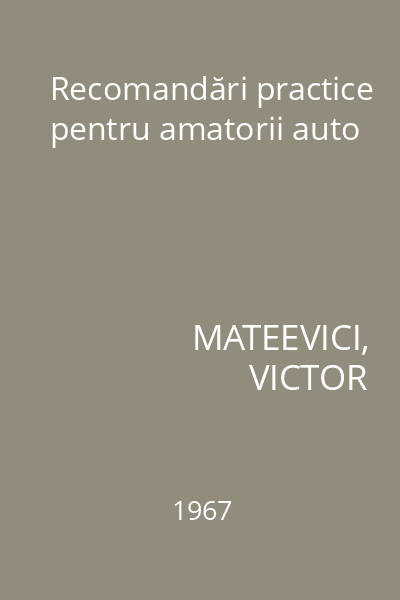| Titlu | Recomandări practice pentru amatorii auto |