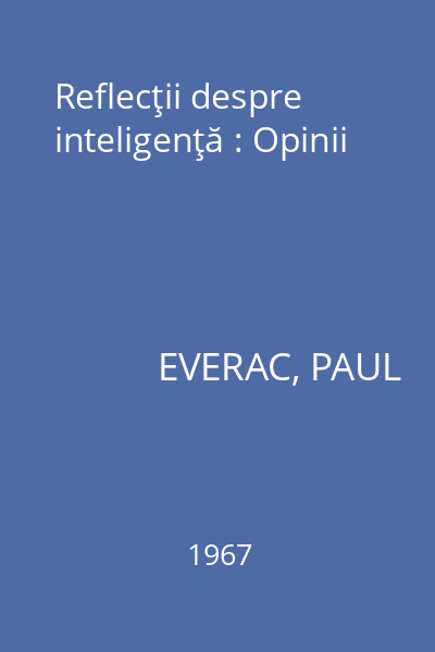 | Titlu | Reflecţii despre inteligenţă : Opinii |