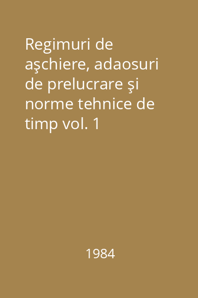 | Titlu | Regimuri de aşchiere, adaosuri de prelucrare şi norme tehnice de timp vol. 1 |