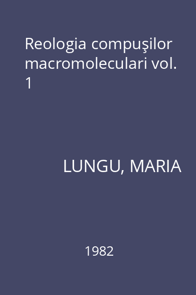 | Titlu | Reologia compuşilor macromoleculari vol. 1 |