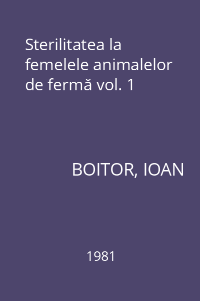 | Titlu | Reproducţia normală şi patologică la animalele domestice vol. 1 |