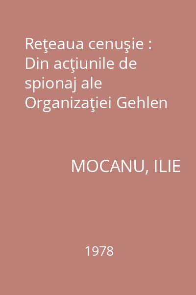 | Titlu | Reţeaua cenuşie : Din acţiunile de spionaj ale Organizaţiei Gehlen |