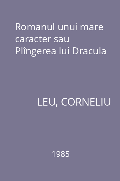 | Titlu | Romanul unui mare caracter sau Plîngerea lui Dracula |