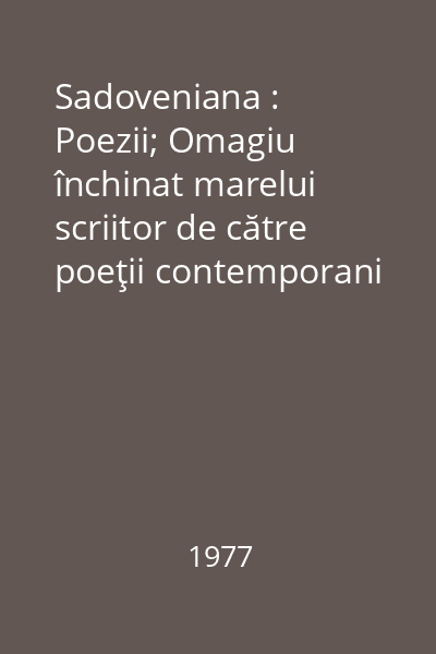 | Titlu | Sadoveniana : Poezii; Omagiu închinat marelui scriitor de către poeţii contemporani |