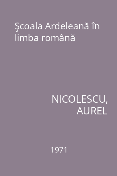 | Titlu | Şcoala Ardeleană în limba română |