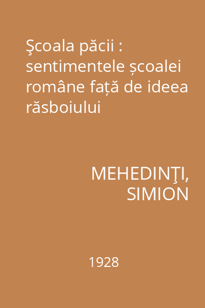 | Titlu | Şcoala păcii : sentimentele școalei române față de ideea răsboiului |