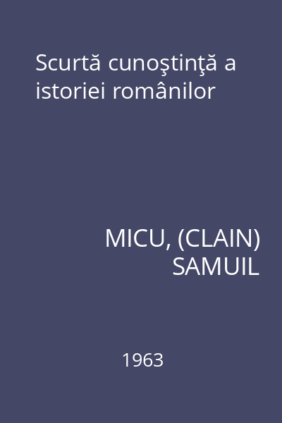 | Titlu | Scurtă cunoştinţă a istoriei românilor |