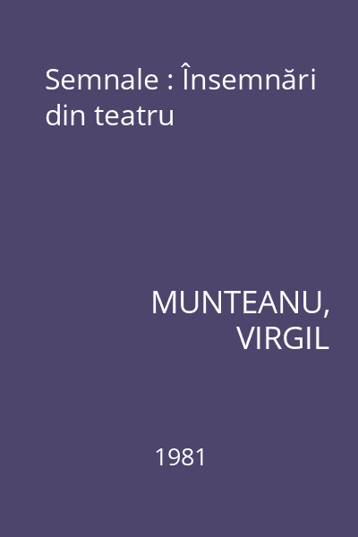 | Titlu | Semnale : Însemnări din teatru |