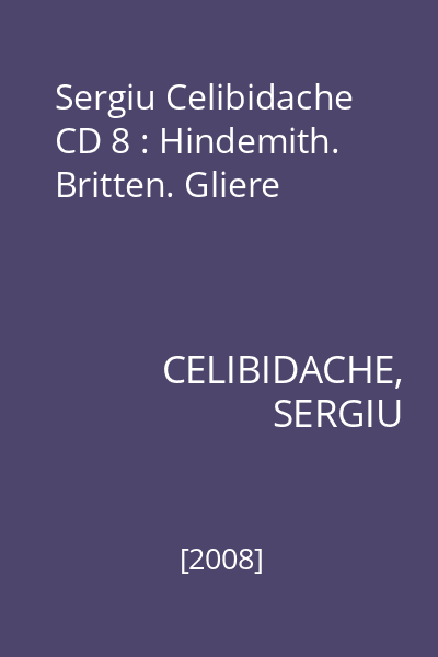 | Titlu | Sergiu Celibidache CD 8 : Hindemith. Britten. Gliere |