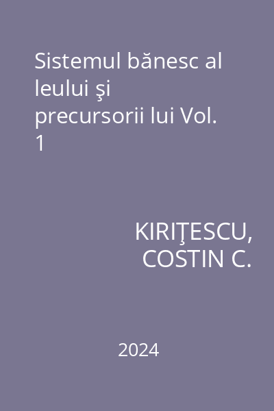 | Titlu | Sistemul bănesc al leului şi precursorii lui Vol. 1 |