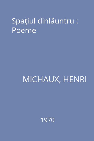 | Titlu | Spaţiul dinlăuntru : Poeme |