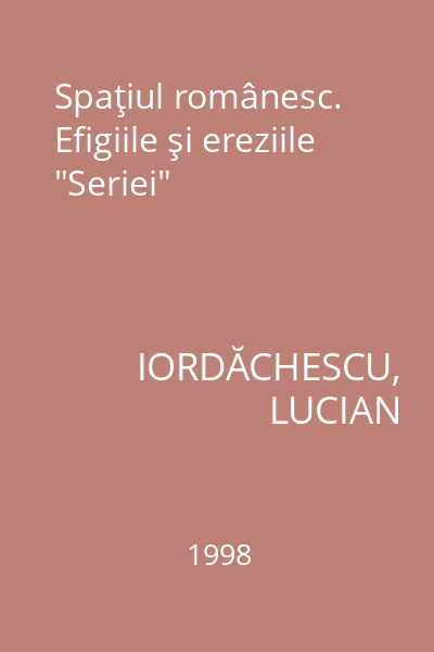 | Titlu | Spaţiul românesc. Efigiile şi ereziile "Seriei" |