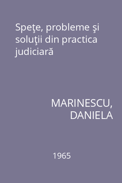 | Titlu | Speţe, probleme şi soluţii din practica judiciară |