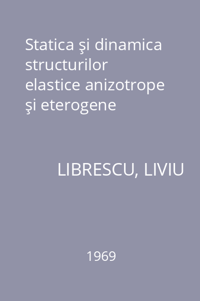 | Titlu | Statica şi dinamica structurilor elastice anizotrope şi eterogene |