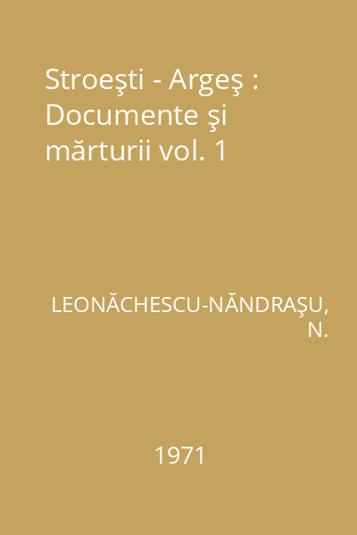 | Titlu | Stroeşti - Argeş : Documente şi mărturii vol. 1 |