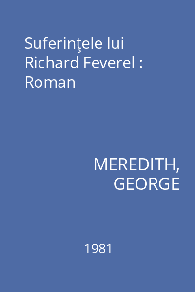 | Titlu | Suferinţele lui Richard Feverel : Roman |