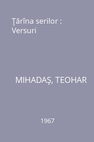 | Titlu | Ţărîna serilor : Versuri |