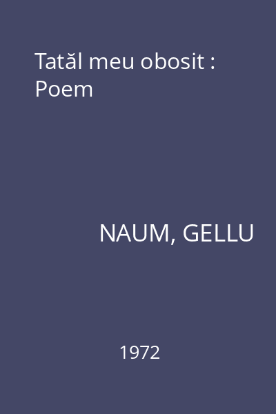 | Titlu | Tatăl meu obosit : Poem |
