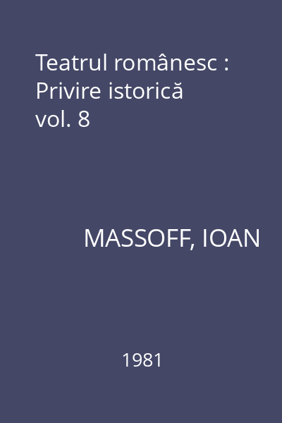 | Titlu | Teatrul românesc : Privire istorică vol. 8 |