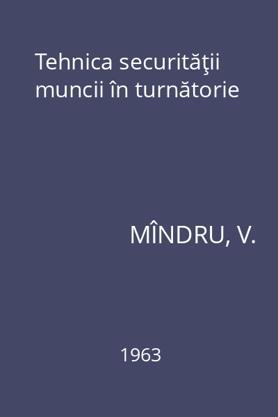 | Titlu | Tehnica securităţii muncii în turnătorie |