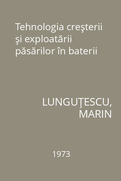| Titlu | Tehnologia creşterii şi exploatării păsărilor în baterii |