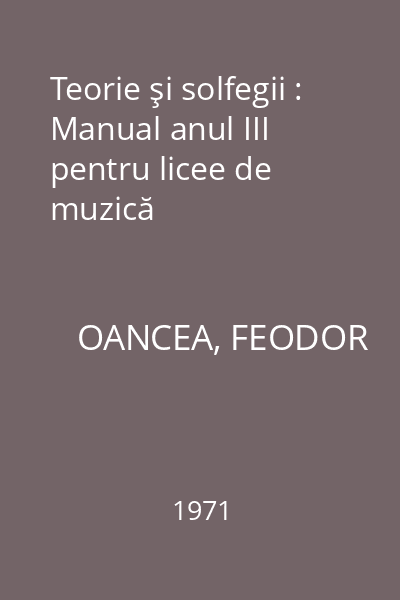 | Titlu | Teorie şi solfegii : Manual anul III pentru licee de muzică |