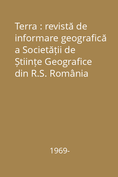 | Titlu | Terra : revistă de informare geografică a Societății de Științe Geografice din R.S. România |