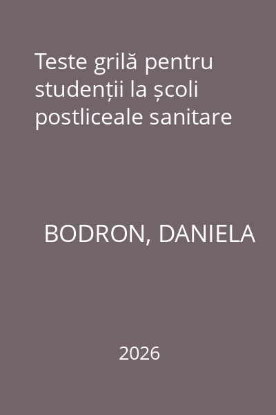 | Titlu | Teste grilă pentru studenții la școli postliceale sanitare |