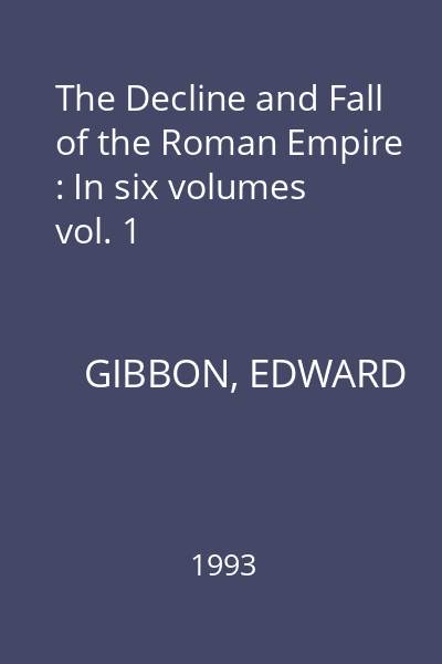 | Titlu | The Decline and Fall of the Roman Empire : In six volumes vol. 1 |