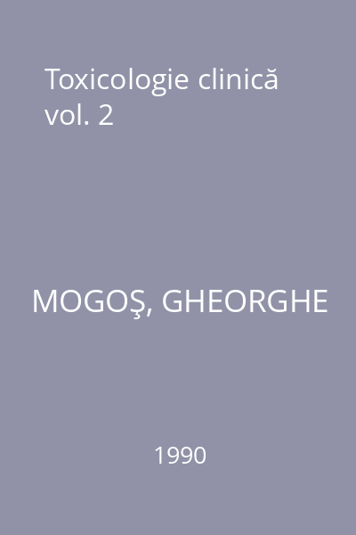 | Titlu | Toxicologie clinică vol. 2 |