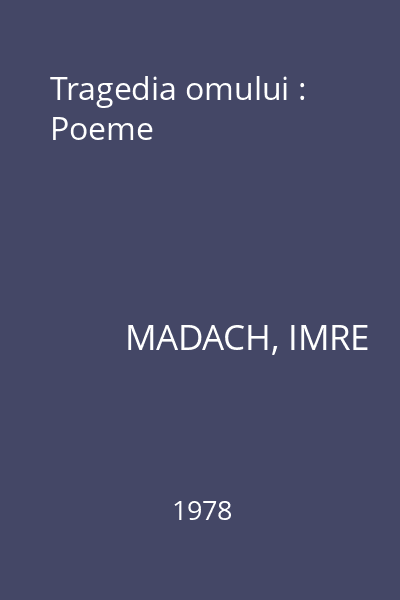 | Titlu | Tragedia omului : Poeme |