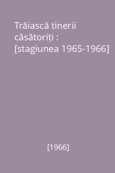 | Titlu | Trăiască tinerii căsătoriți : [stagiunea 1965-1966] |