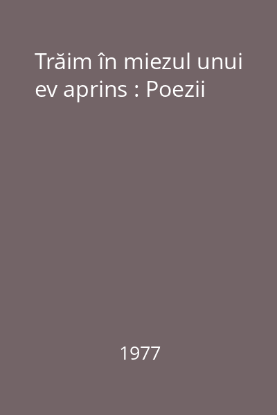 | Titlu | Trăim în miezul unui ev aprins : Poezii |