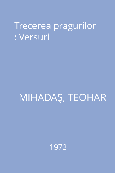 | Titlu | Trecerea pragurilor : Versuri |