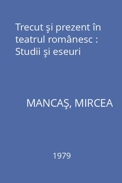 | Titlu | Trecut şi prezent în teatrul românesc : Studii şi eseuri |