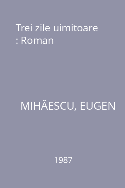 | Titlu | Trei zile uimitoare : Roman |