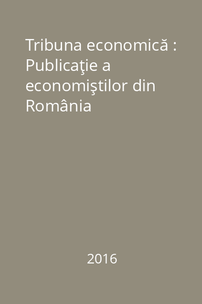 | Titlu | Tribuna economică : Publicaţie a economiştilor din România |