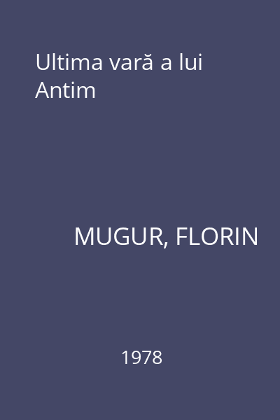 | Titlu | Ultima vară a lui Antim |