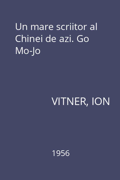 | Titlu | Un mare scriitor al Chinei de azi. Go Mo-Jo |