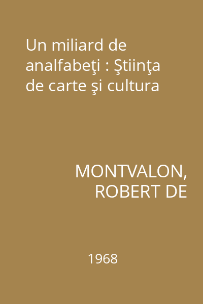 | Titlu | Un miliard de analfabeţi : Ştiinţa de carte şi cultura |