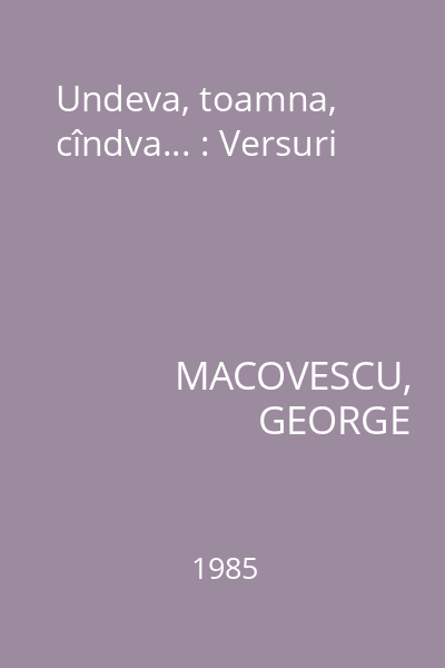 | Titlu | Undeva, toamna, cîndva... : Versuri |