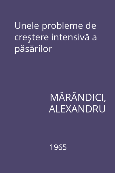 | Titlu | Unele probleme de creştere intensivă a păsărilor |
