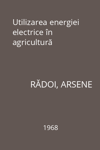 | Titlu | Utilizarea energiei electrice în agricultură |