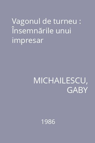 | Titlu | Vagonul de turneu : Însemnările unui impresar |