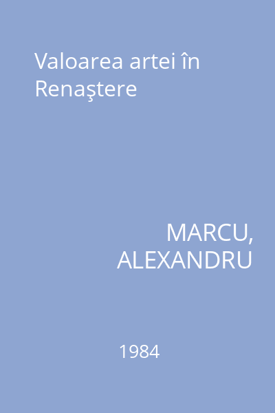 | Titlu | Valoarea artei în Renaştere |